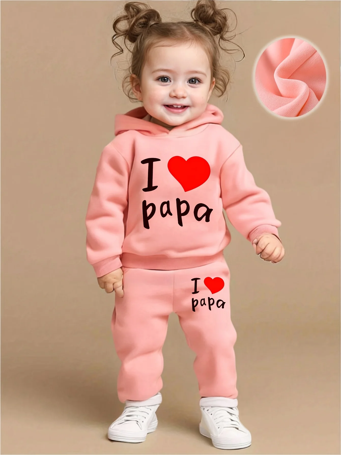 Newborn baby girl’s English printed fleece hoodie and sporty casual pants are suitable for outdoor use
