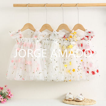 New Summer Kids Girl Dress Sleeveless Tulle Dress with 3D Flower Tutu Casual Children Daily Wear Princess Dresses A6953