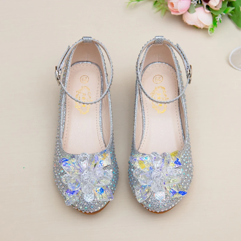 أحذية عالية الكعب للفتيات الربيع والخريف جديد فتاة صغيرة الأميرة الكريستال أحذية الأطفال تظهر Cuhk لينة سوليد الأحذية