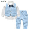 أفضل وأعلى الربيع والخريف بيبي بوي شهم دعوى قميص أبيض مع ربطة القوس فيونكة مخطط سترة بنطلون 3 قطعة ملابس الاطفال الرسمي مجموعة
