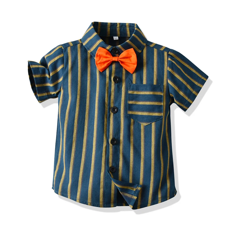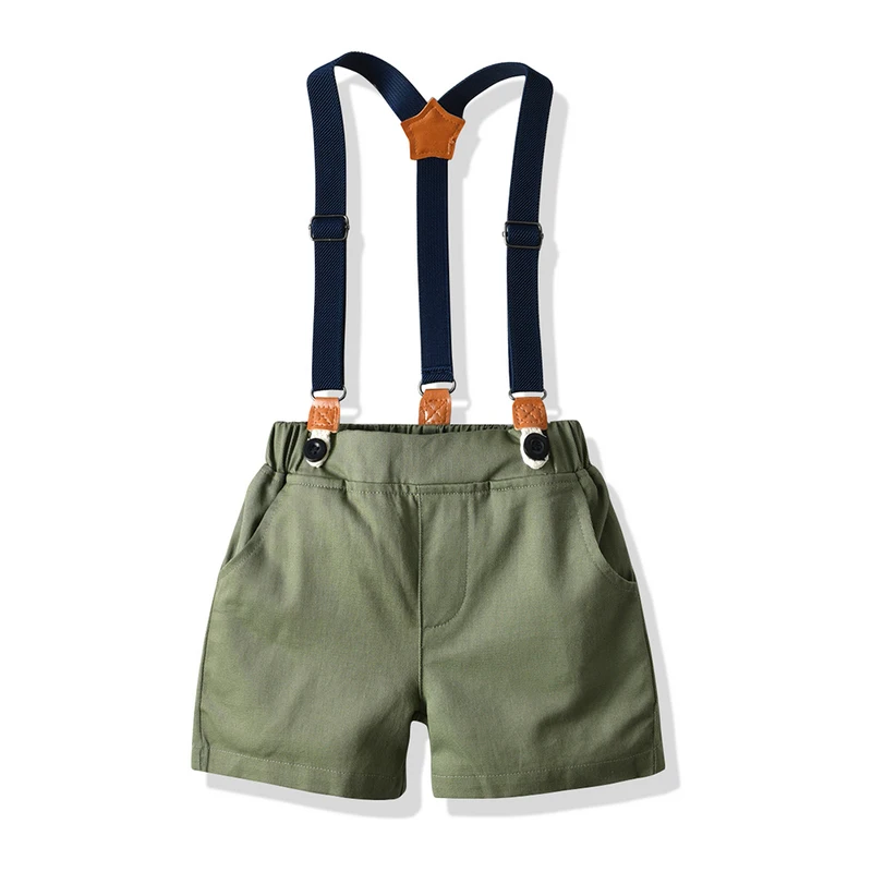 top and top Summer Kids Boys Gentleman Clothes Set Children Boys Casual Clothing Sets Short Sleeve Bowtie Shirt+Overalls Suits
