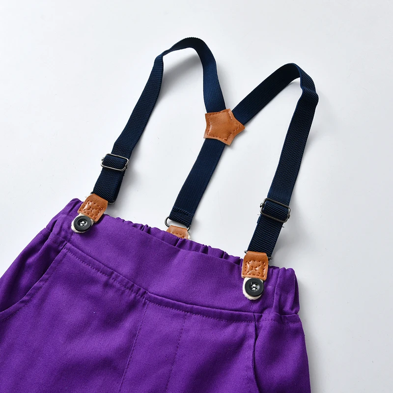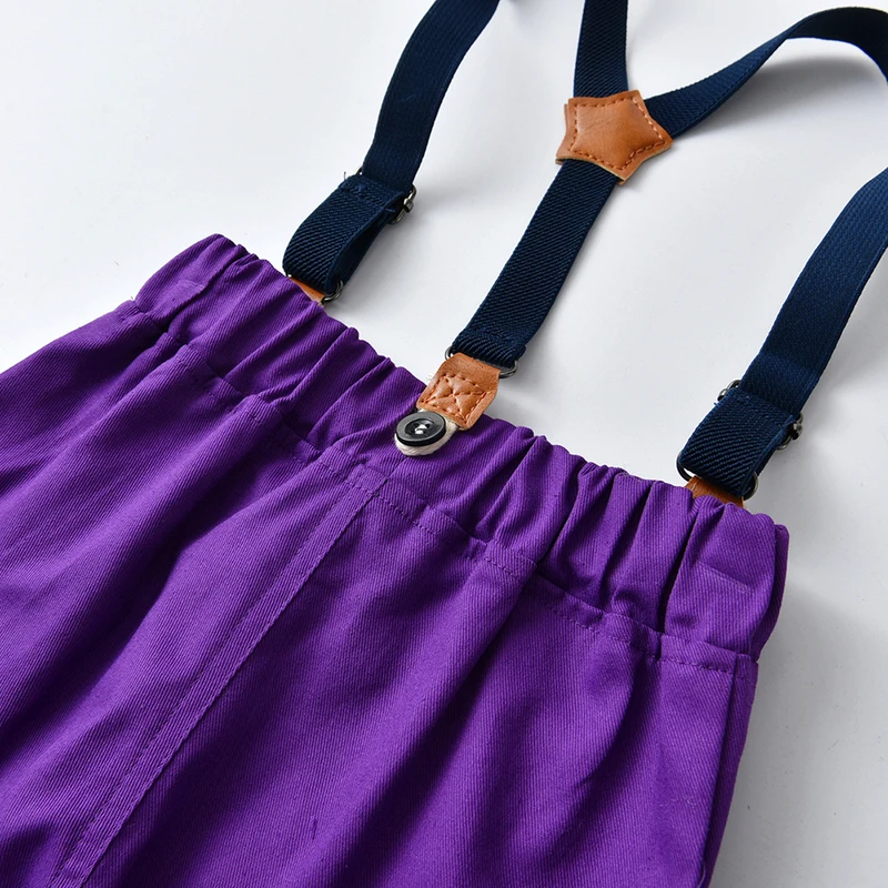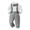 top and top New Fashion Boys Gentleman Plaid Clothing Set Outfit Long Sleeve Shirt+Suspender Pants Kids Boy Casual 2PCS Suit