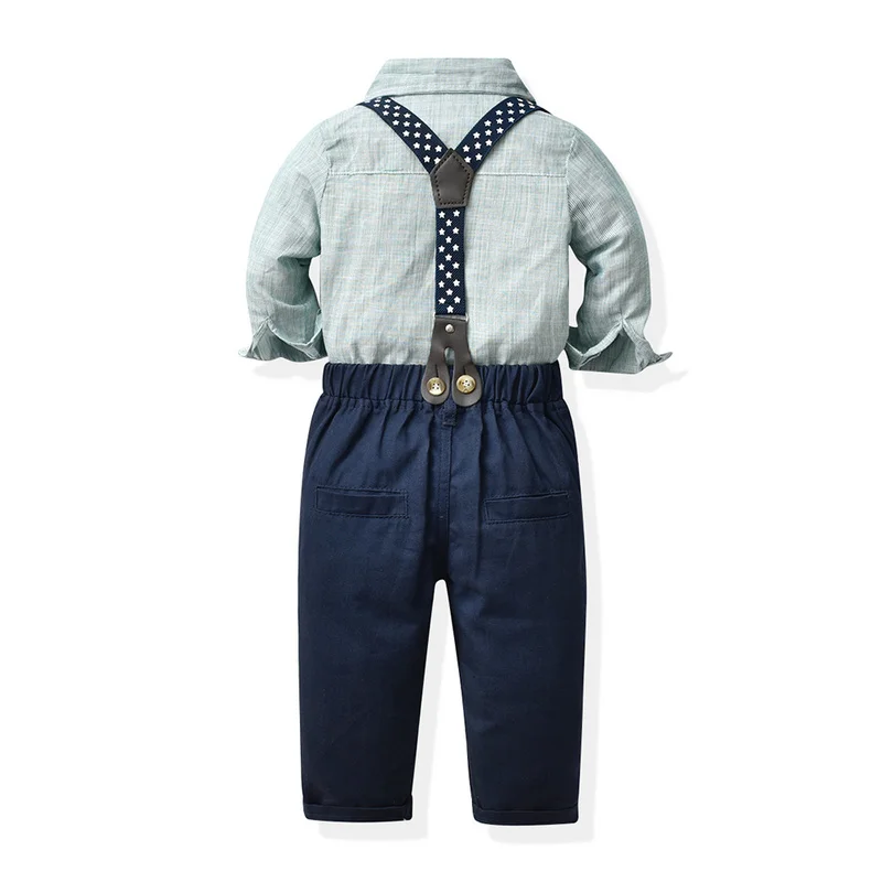 أفضل وأعلى طفل أطفال بنين شهم الملابس مجموعة طويلة الأكمام عادية بووتي قمصان + الحمالات السراويل بزات رسمية وتتسابق