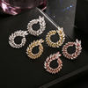 أقراط زركونيا مكعبة شفافة للنساء ، ماركة كبيرة ، لون أبيض/ذهبي وردي ، حجر تشيكوسلوفاكيا ، مجوهرات HE0003