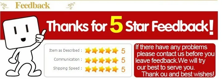 نحن سعداء لترك ردود الفعل الإيجابية بالنسبة لك ونأمل أن تفعل الشيء نفسه لنا. ملاحظاتك مهمة حقا بالنسبة لنا. يرجى التأكد من ترك تصنيف 5 نجوم لنا ، كما أقل من 5 نجوم يساوي السلبية. إذا كان لديك أي شيء غير راض ، يرجى الاتصال بنا قبل ترك ردود فعل سلبية أو تقييمات منخفضة. سوف نقوم بالرد عليك في غضون 24 ساعة ، وسوف نواصل التواصل معك حتى يتم حل المشكلة. سنكون موضع تقدير كبير إذا كنت يمكن أن توفر لنا فرصة لتحسين خدماتنا.