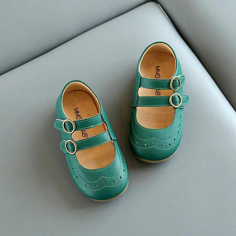 الأخضر الأميرة أحذية فتاة مع الجوف خارج شقة مكافحة زلق الأخضر أطفال بنات أحذية 2 و 3 سنوات الأطفال الأحذية الجلدية
