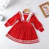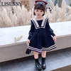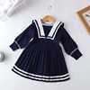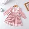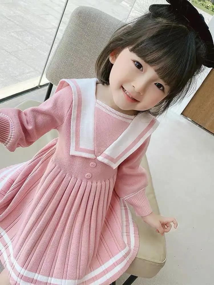 الأطفال الخريف الملابس الخريف 2021 طفل الفتيات كلية نمط التلبيب فستان بأكمام طويلة طفل محبوك سترة فستان بحار طوق 2-8