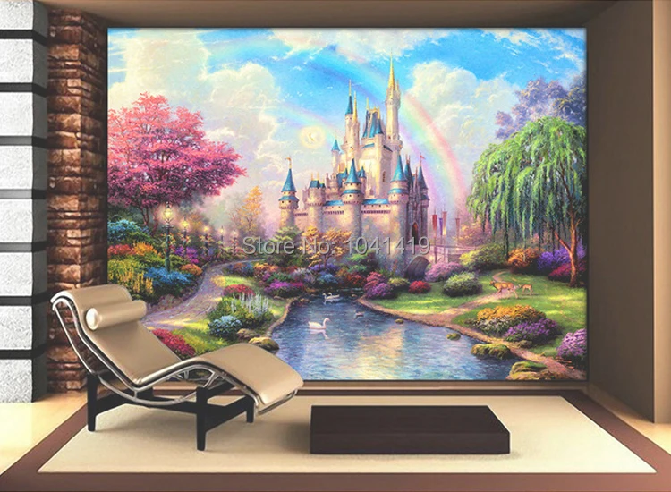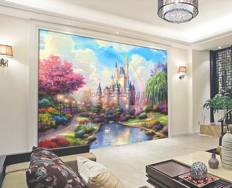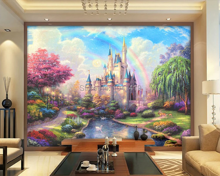 العرف ثلاثية الأبعاد جدارية الفراش غرفة أريكة التلفزيون جدار خلفية الخيال القلعة مدخل غرفة الأطفال جداريات الاطفال ديكور صور خلفية