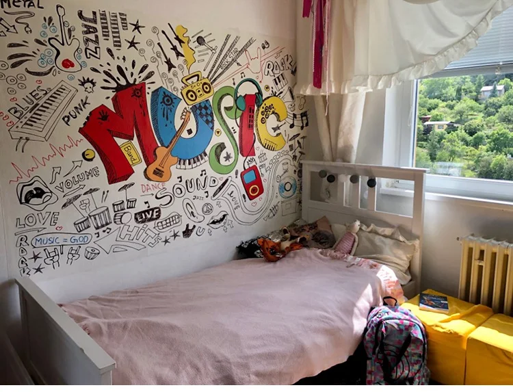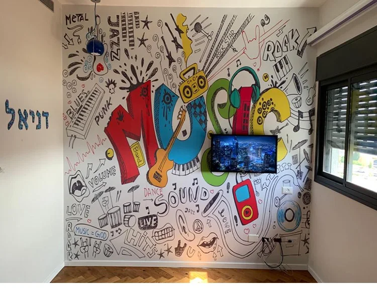 العرف ثلاثية الأبعاد مجردة الموسيقية غرفة الأطفال الكتابة على الجدران كبيرة جدارية مقهى مطعم بار غرفة نوم الشوارع روك غير خلفية قماش