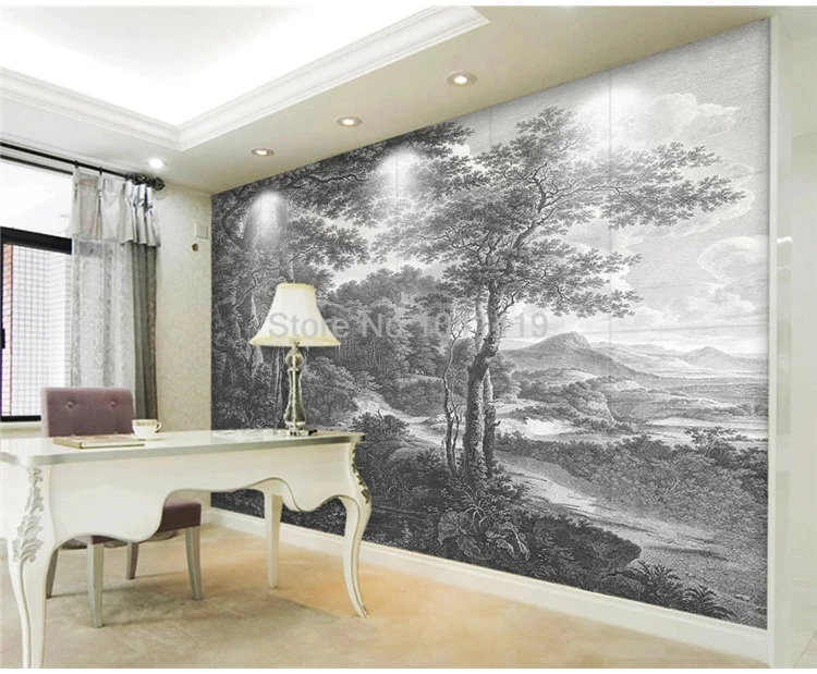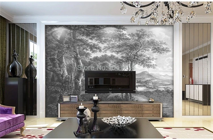 العرف صور خلفيات الرجعية رسمت باليد أبيض وأسود شجرة الغابات جدارية غرفة المعيشة أريكة التلفزيون غرفة نوم في الهواء الطلق Papel دي Parede