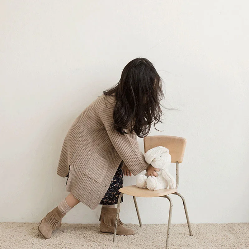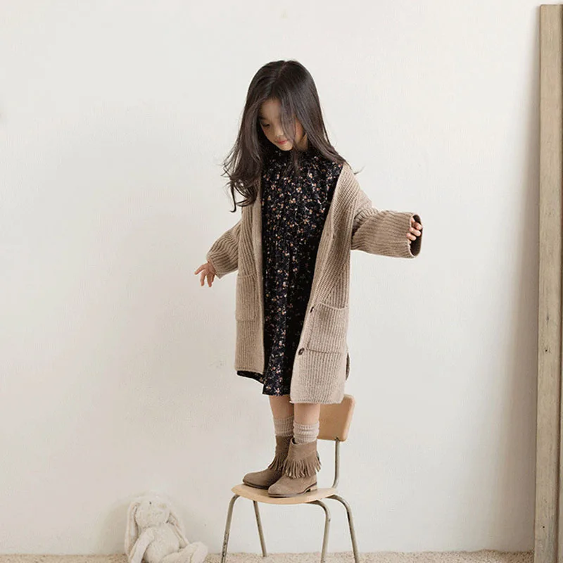 الفتيات سترة سترة ملابس الخريف الجديدة الأطفال النسخة الكورية كبيرة للأطفال منتصف طول سميكة متماسكة سترة للمراهقين