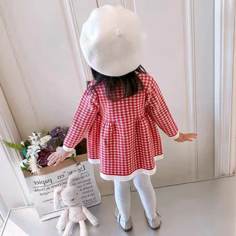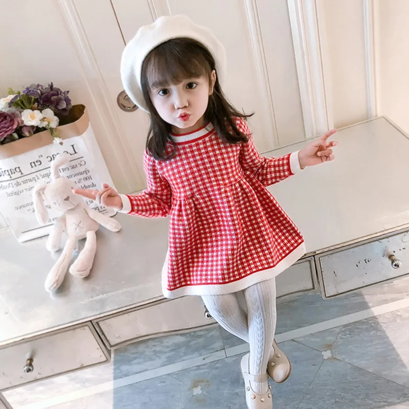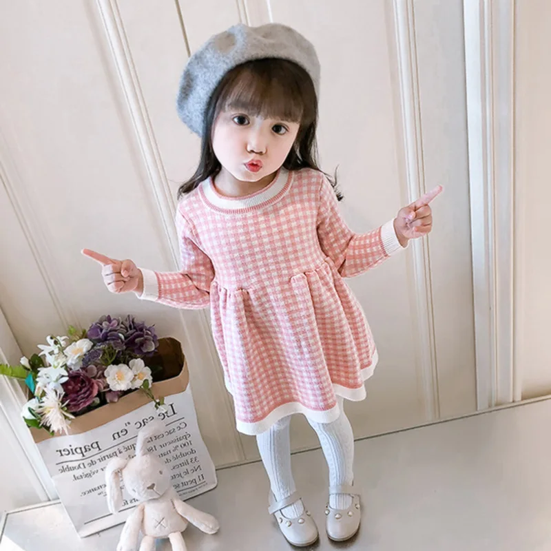 الفتيات سترة فستان خريف 2022 موضة جديدة طويلة الأكمام الأميرة الصغيرة المدرسة المتوسطة فتاة الطفل محبوك سترة فستان من الصوف