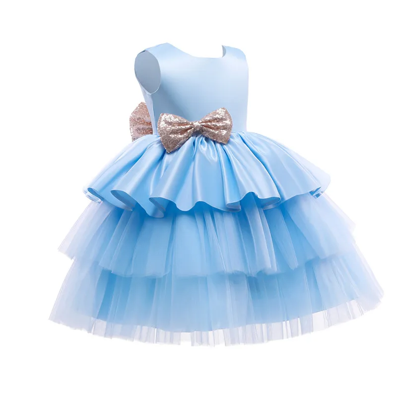 الفتيات فساتين الاطفال الصيف أكمام الزفاف و حفلة عيد ميلاد الترتر القوس كعكة Vestidos الأطفال الدانتيل سحق توتو فستان الأميرة