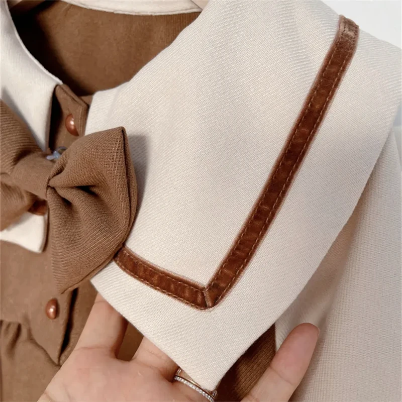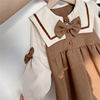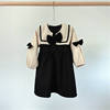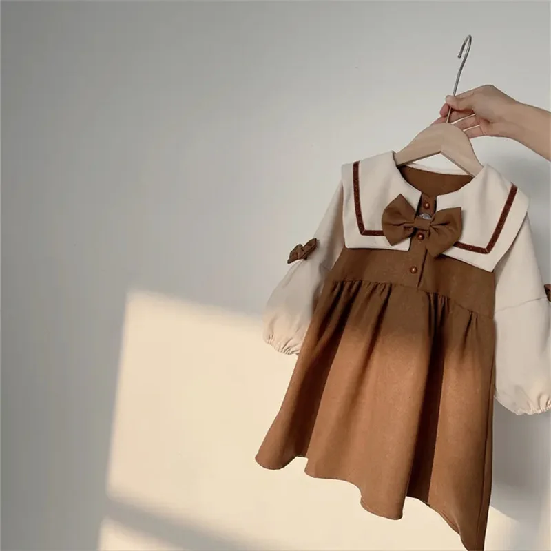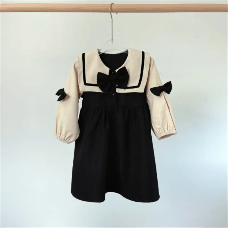 الفتيات فستان الخريف 2022 جديد للأطفال الفتيات فستان الأميرة الفتيات الصغيرات الربيع Bowknot طوق الطلاب فستان بكم طويل