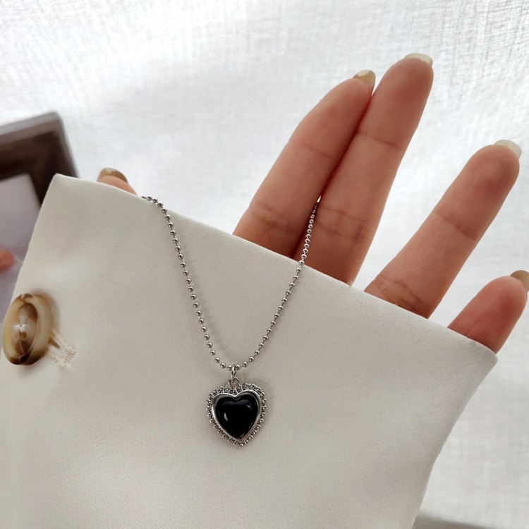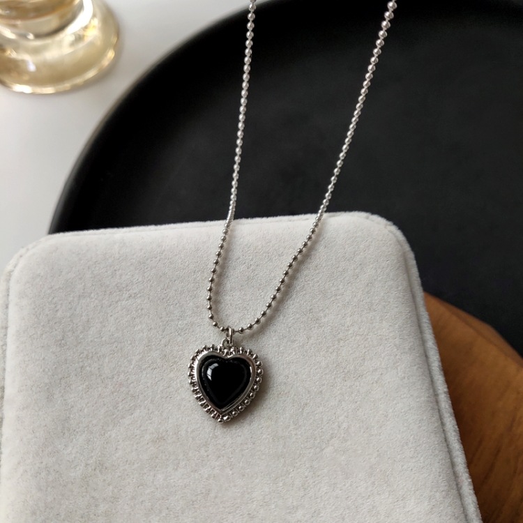 القوطي الأسود القلب قلادة قلادة بسيطة المعادن الحب سلسلة قصيرة تصل إلى عظمة الترقوة القلائد للنساء Egirl مجوهرات حزب Kpop المختنق قلادة