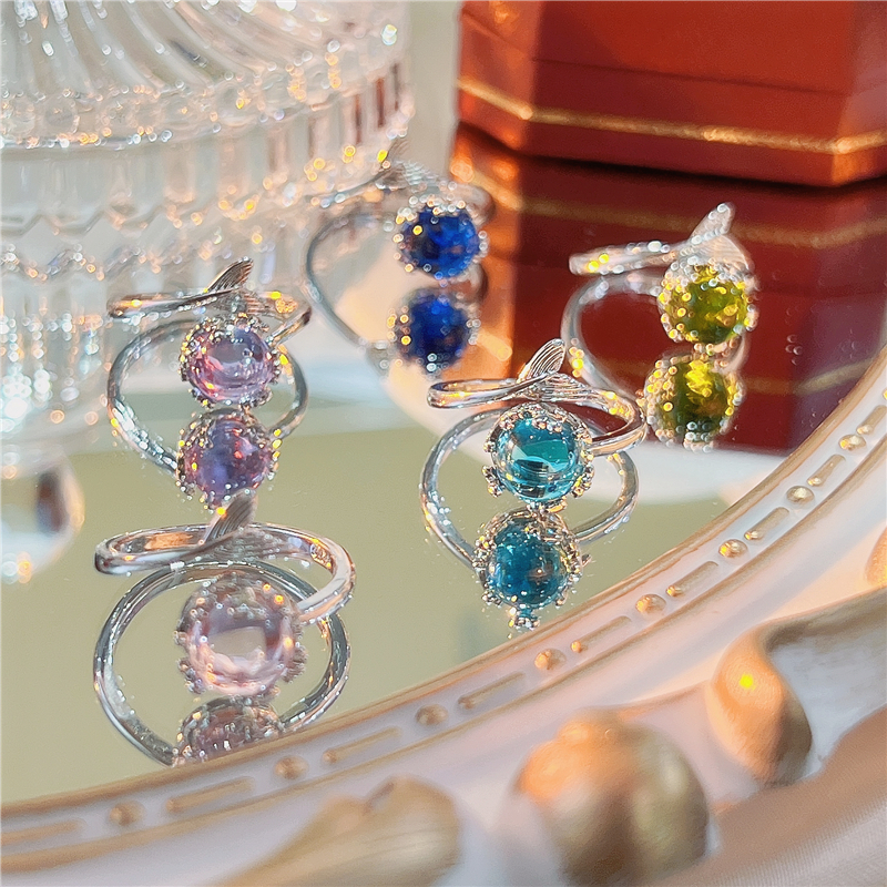 الكورية أزياء حورية البحر الذيل الملونة كريستال خواتم للنساء الفتيات افتتاح بسيط قابل للتعديل لطيف خاتم الاصبع بالجملة
