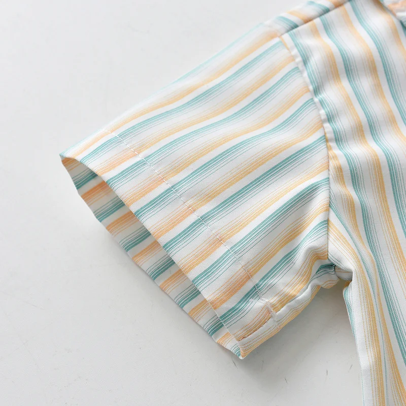 بلوزات علوية وعلوية للصيف أطقم ملابس جديدة للأولاد الصغار شورتات أكمام مخططة قمصان بووتي + حمالات شورتات رسمية
