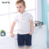 بلوزات للأطفال والأولاد مجموعة ملابس الصيف القطن المطبوع مرساة قصيرة الأكمام تي شيرت + الدنيم السراويل 2 قطعة بدلة طفل رضيع عادية