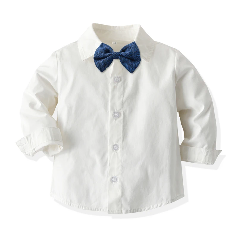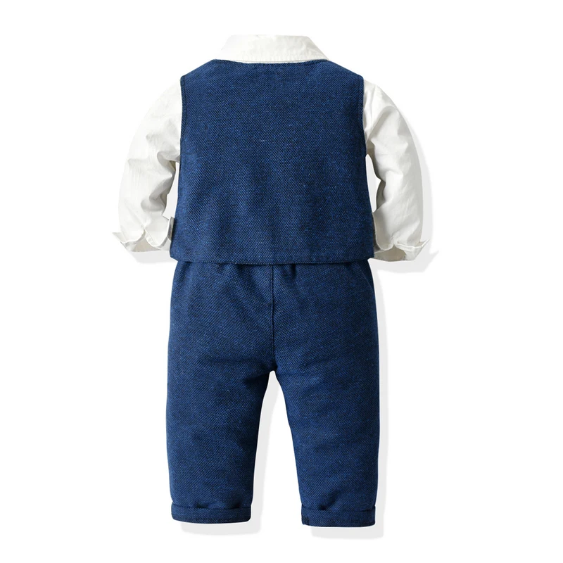 بلوزات وأعلى موضة طفل الفتيان شهم مجموعة ملابس الاطفال الصبي قمصان بيضاء مع ربطة العنق سترة السراويل ملابس 3 قطعة