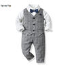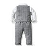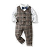بلوزات و علوية بنين ملابس كاجوال مجموعات الاطفال الزي الرسمي كم طويل ابيض ربطة قميص منقوشة سترة السراويل 3 قطعة الدعاوى الصبي