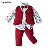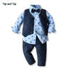 بلوزات و كبار الفتيان شهم الملابس مجموعة قميص قطني بكم طويل ربطة قميص صدرية السراويل 3 قطعة بدلة الاطفال الصبي ملابس كاجوال مجموعة