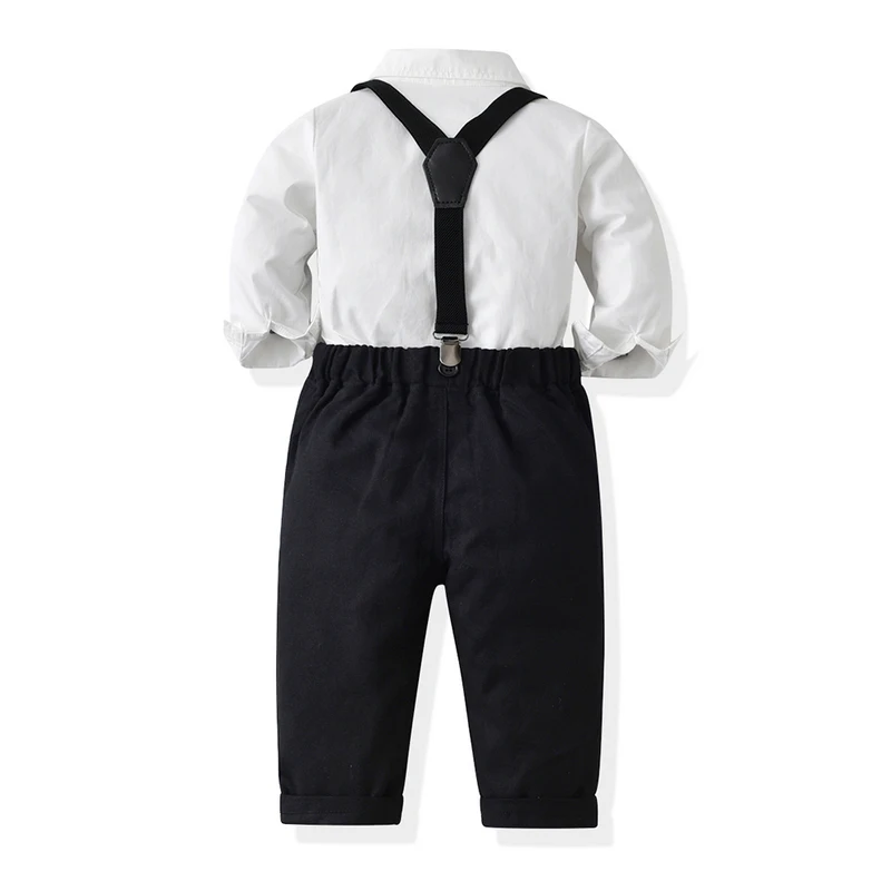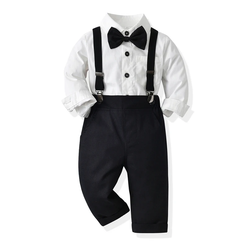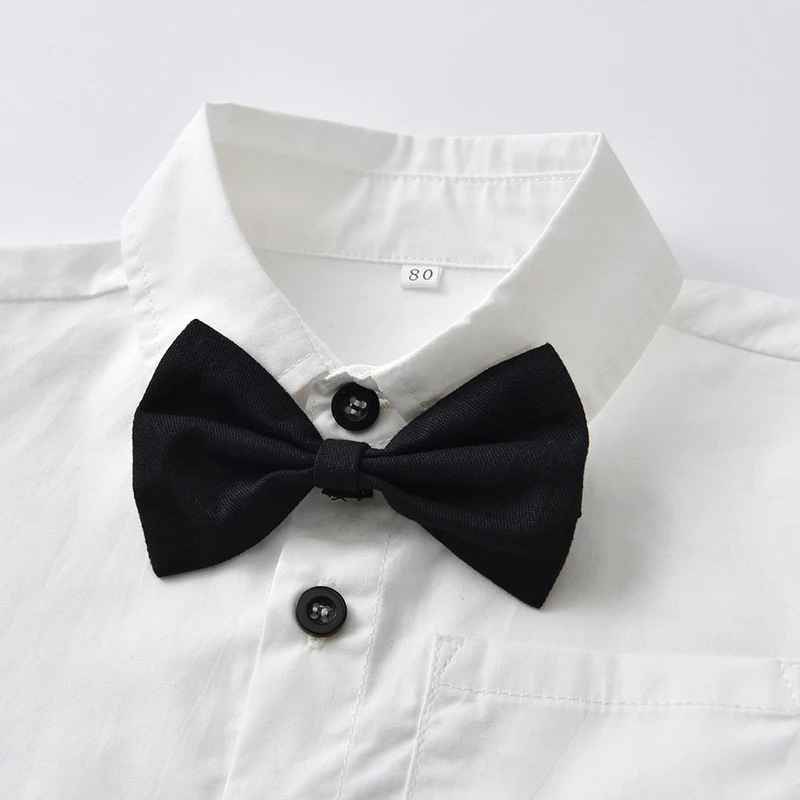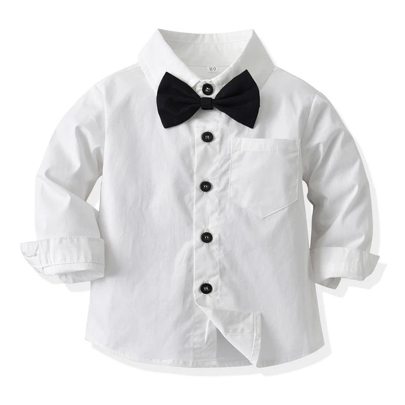 بلوزات top الخريف الشتاء طفل الفتيان ملابس كاجوال مجموعة طويلة الأكمام ربطة قميص بلايز وزرة Gentleman 2 قطعة ملابس Tuexdo