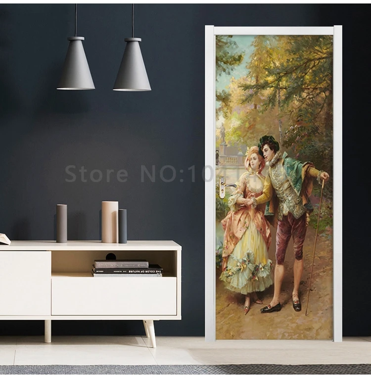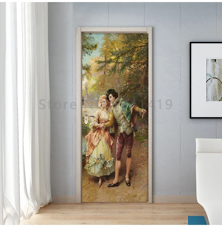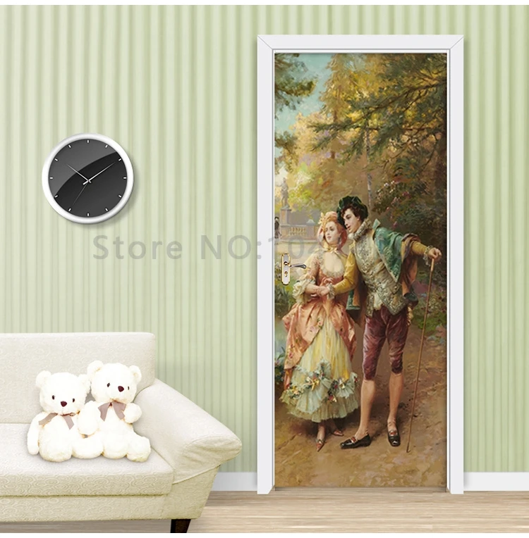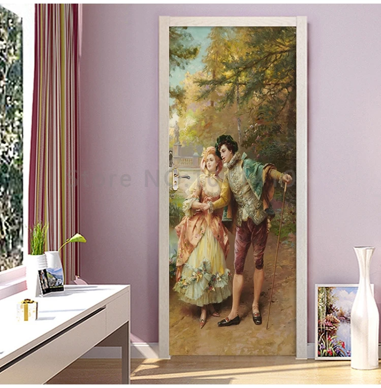 بولي كلوريد الفينيل ذاتية اللصق ملصق باب مقاوم للماء النمط الأوروبي البريطانية النفط اللوحة شخصية زوجين خلفية غرفة المعيشة الباب ملصق