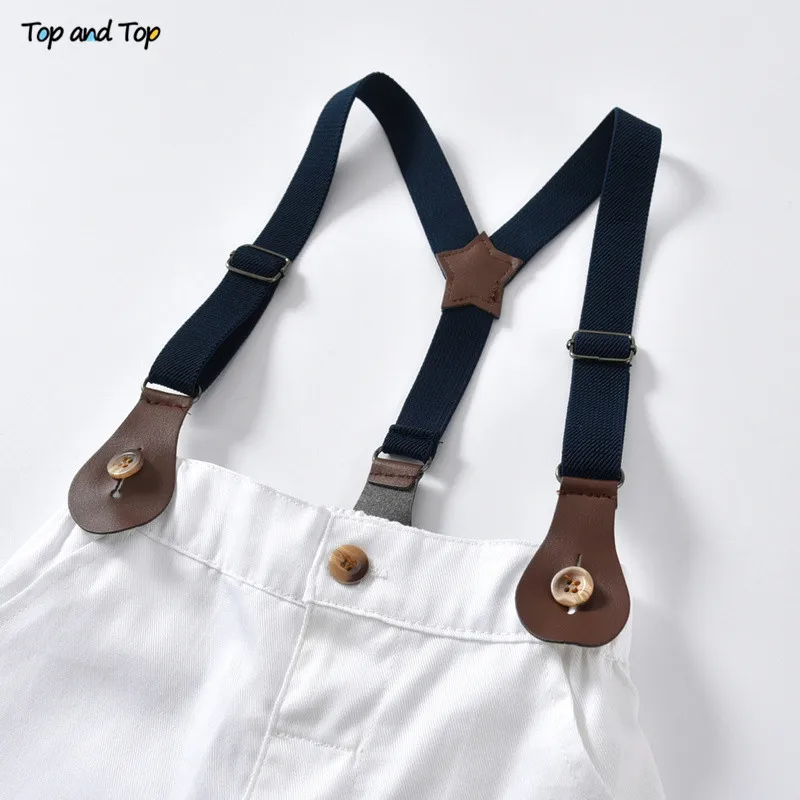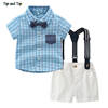 بيبي بوي شهم مجموعة ملابس الصيف دعوى للطفل قميص مخطط مع ربطة القوس فيونكة + الحمالات الأبيض السروال الرسمي الأولاد الملابس
