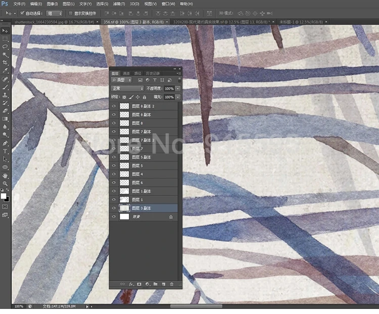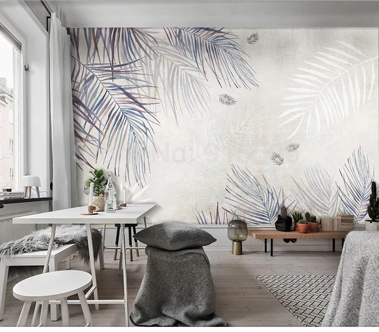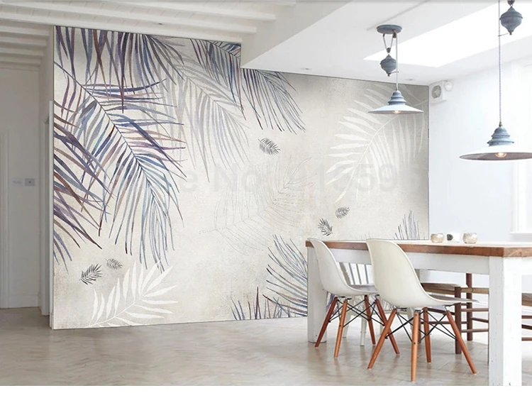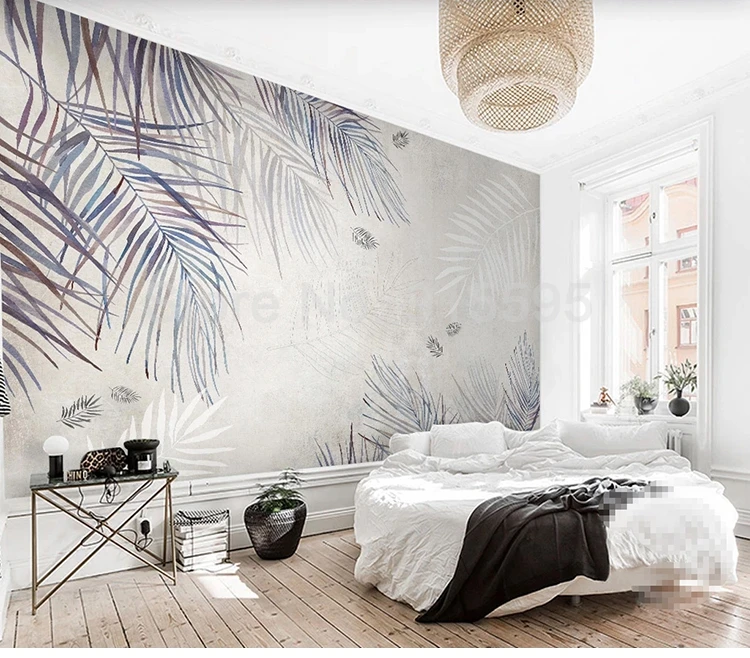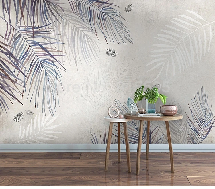 جداريات صور مخصصة الحديثة رسمت باليد مجردة الفن النبات ورقة ثلاثية الأبعاد غرفة نوم غرفة المعيشة التلفزيون خلفية خلفية الجدار تغطي