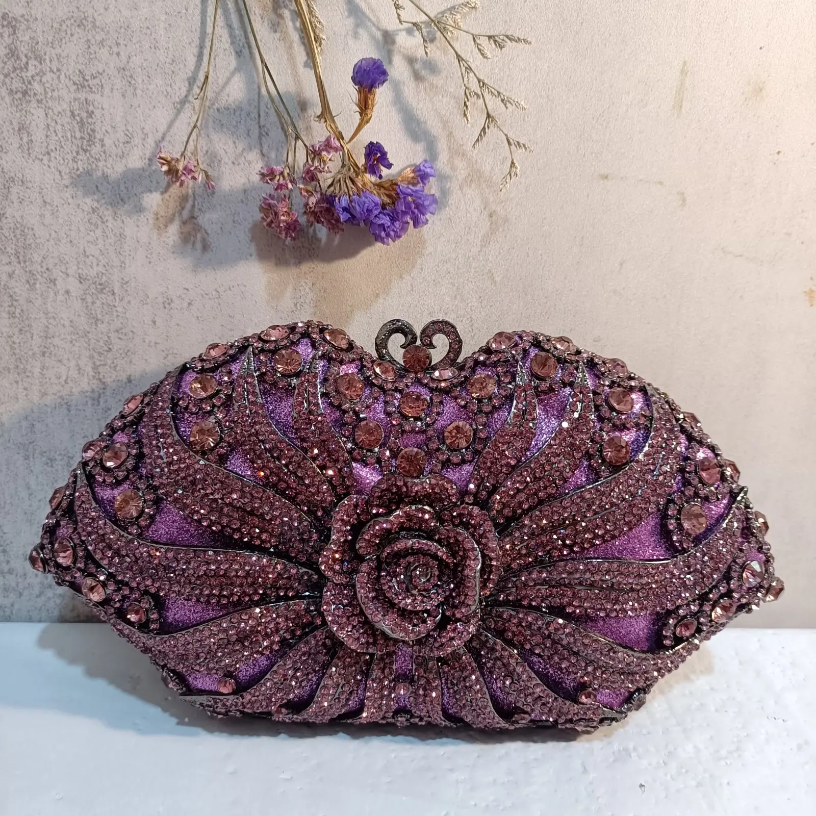 حقائب يد نسائية مسائية مرصعة بأحجار أرجوانية حقائب يد نسائية مرصعة بأحجار الراين حقائب يد للحفلات وحفلات الزفاف محفظة صغيرة حقائب براثن حقيبة أرجوانية