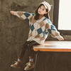 سترة كارديجان محبوكة مربعات للأطفال ، سترة كارديجان كاروهات كورية للأطفال ، سترة ألماس أوروبية وأمريكية 2020