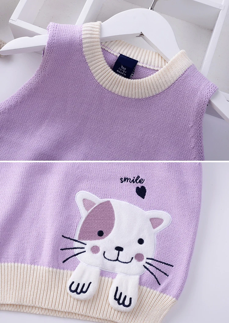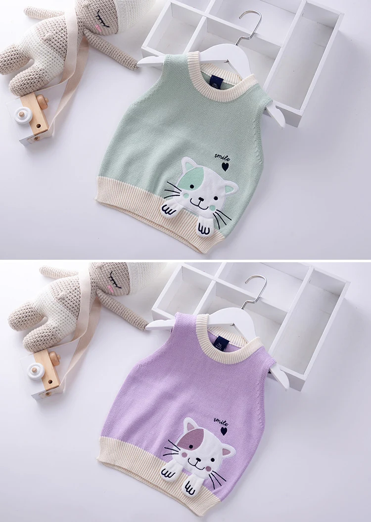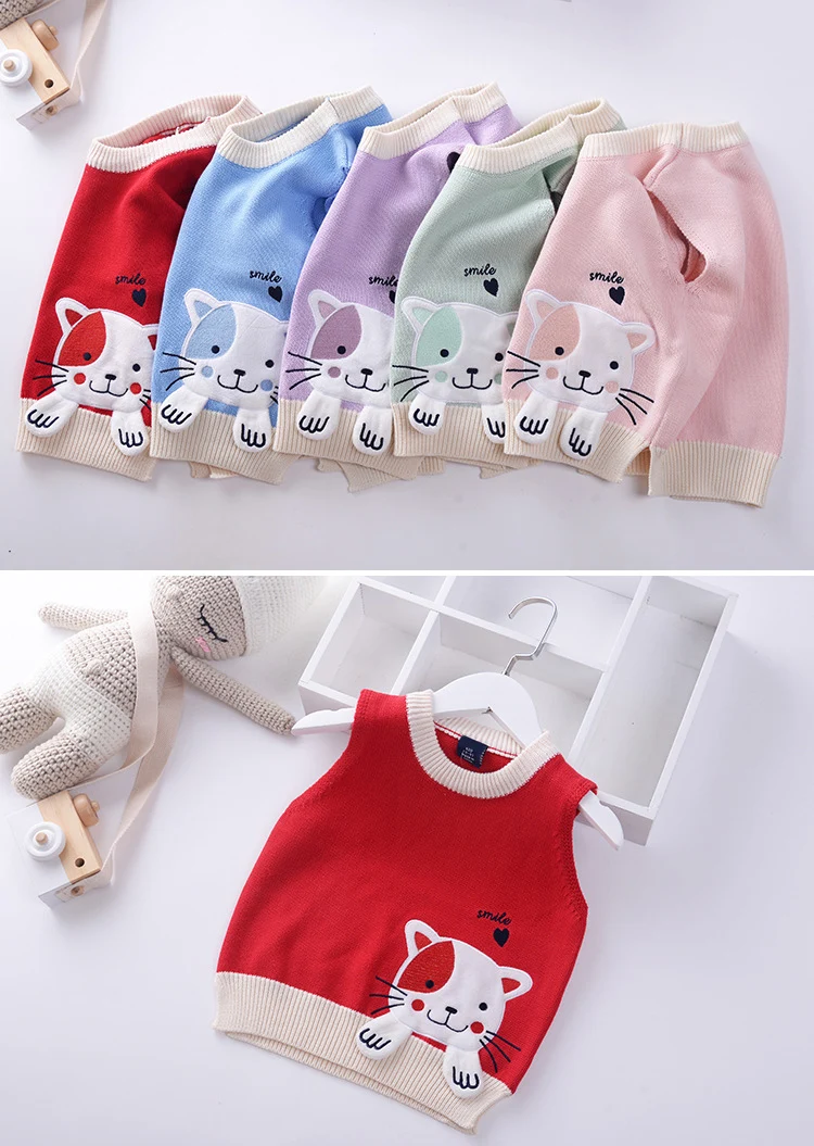 سترة للفتيات لربيع وخريف عام 2021 سترة محبوكة برسومات كرتونية معطف للأطفال على شكل قطة مُطرزة سترة للأطفال ملابس خارجية سترات للأطفال