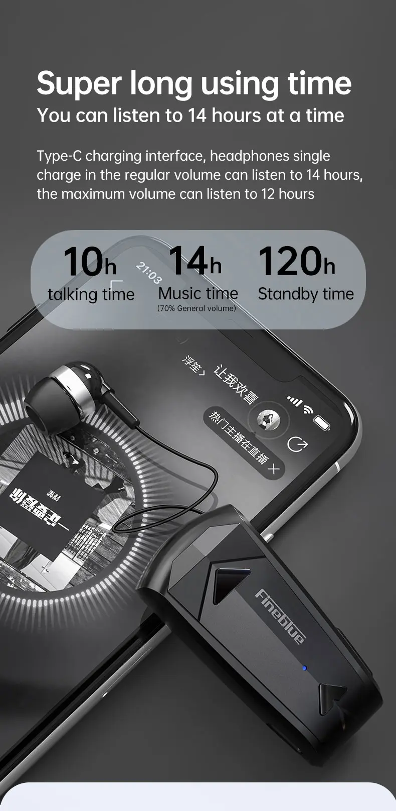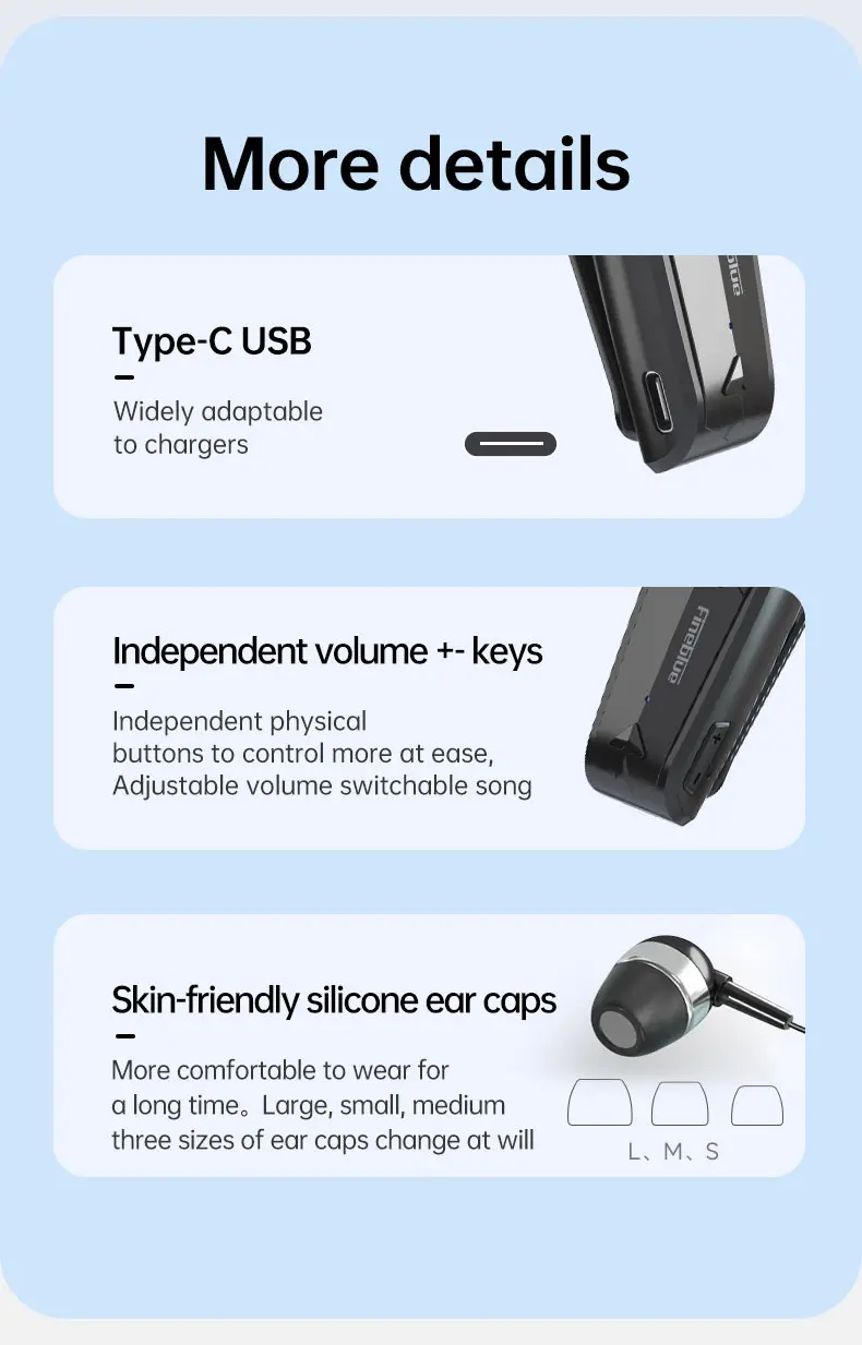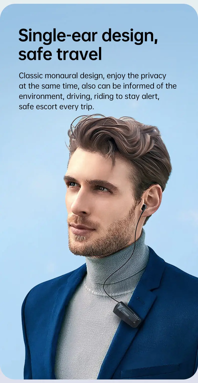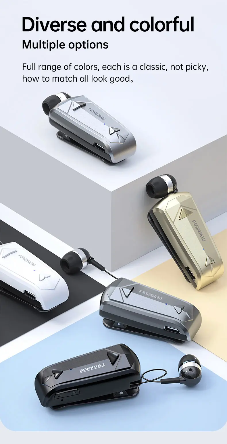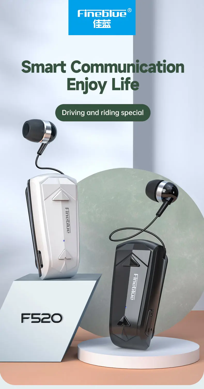 سماعة أذن صغيرة لاسلكية موديل 2022 Fineblue F520 مزودة بتقنية البلوتوث 5.3 قابلة للسحب ومزودة بسماعات يمكن حملها وتذكيرها بالاهتزاز وسماعة رأس رياضية للركض