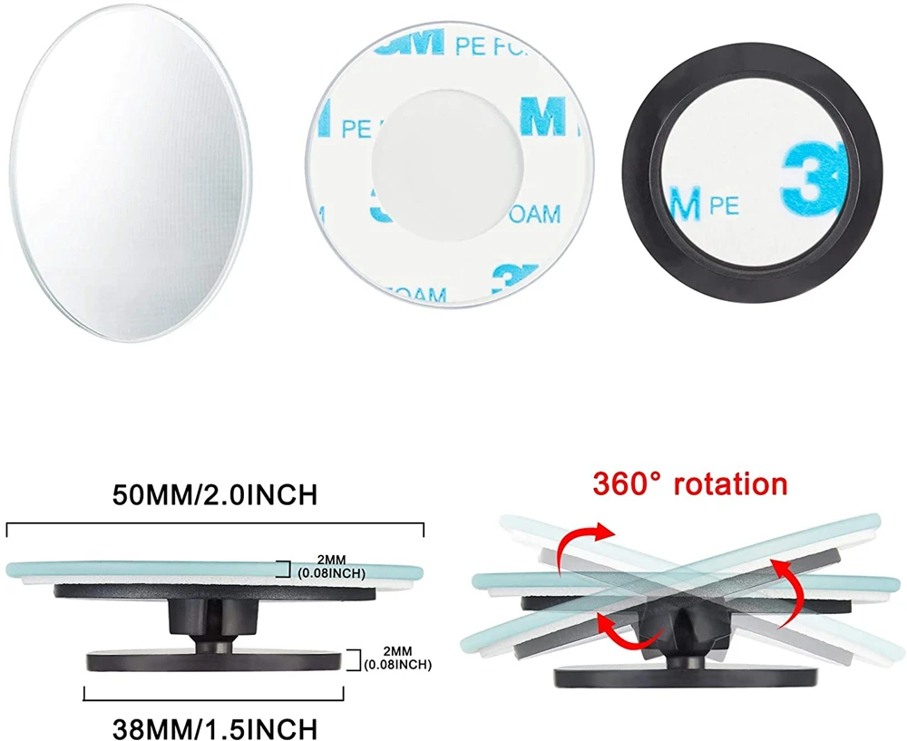 سيارة 360 درجة HD الجانب العمياء مرآة عكس فرملس سامسونج زاوية واسعة مستديرة محدبة قابل للتعديل دوران مرآة خلفية