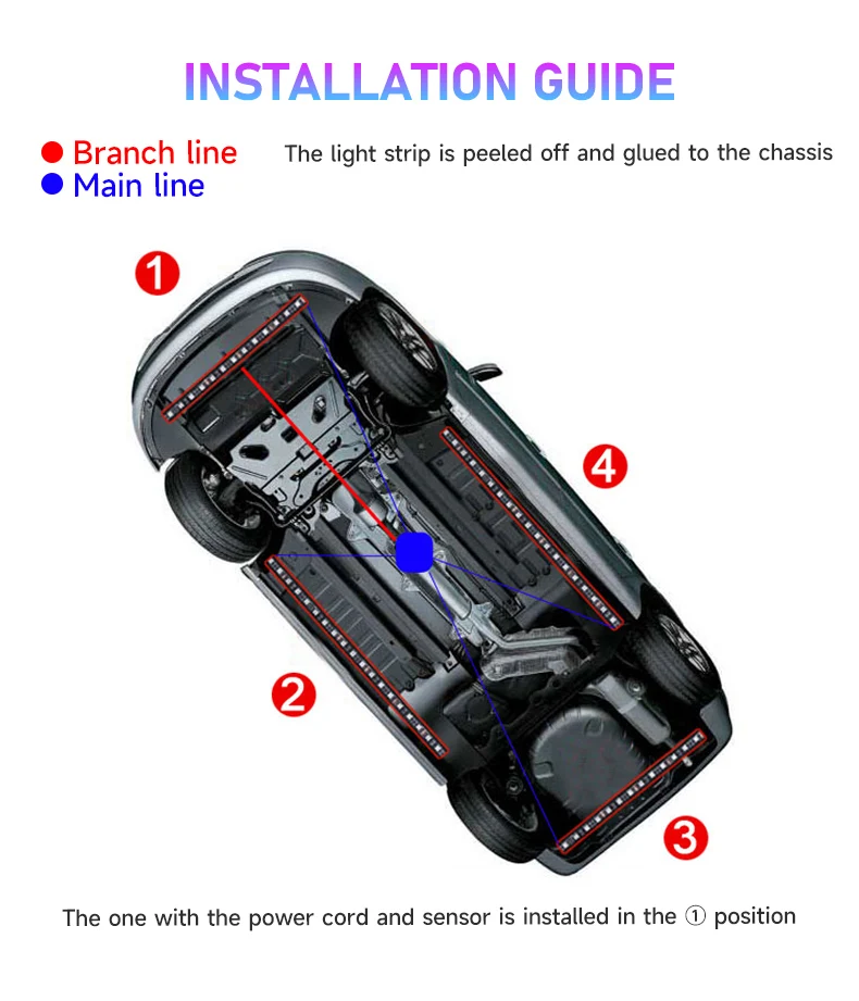 سيمفونية LED سيارة ضوء تحت توهج قطاع الخلفية 12 فولت RGB APP التحكم الصوتي عن بعد السيارات ديكور الغلاف الجوي تحت الجسم مصباح النيون