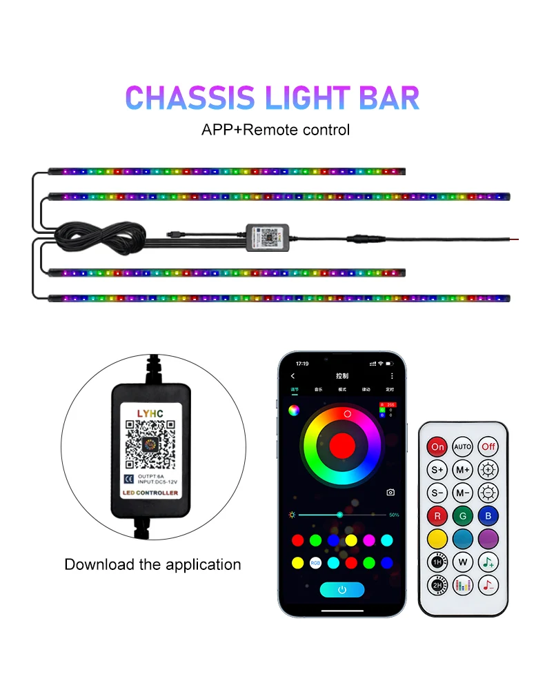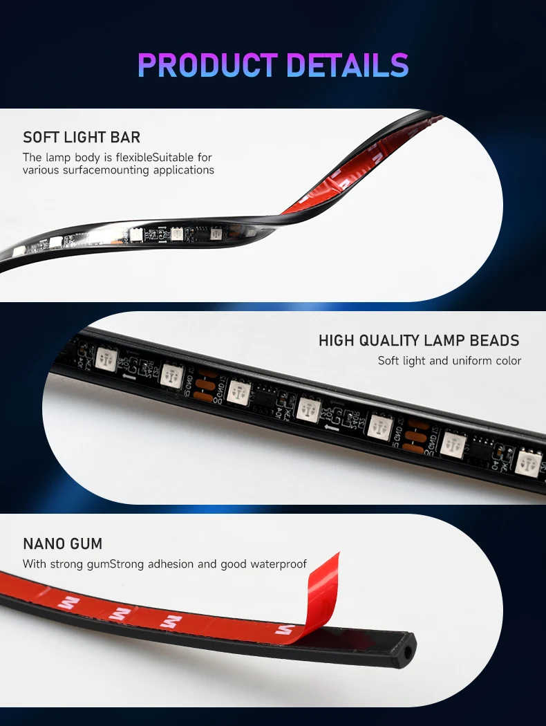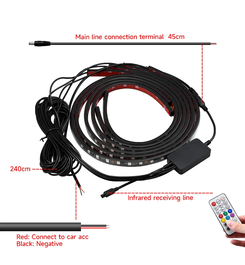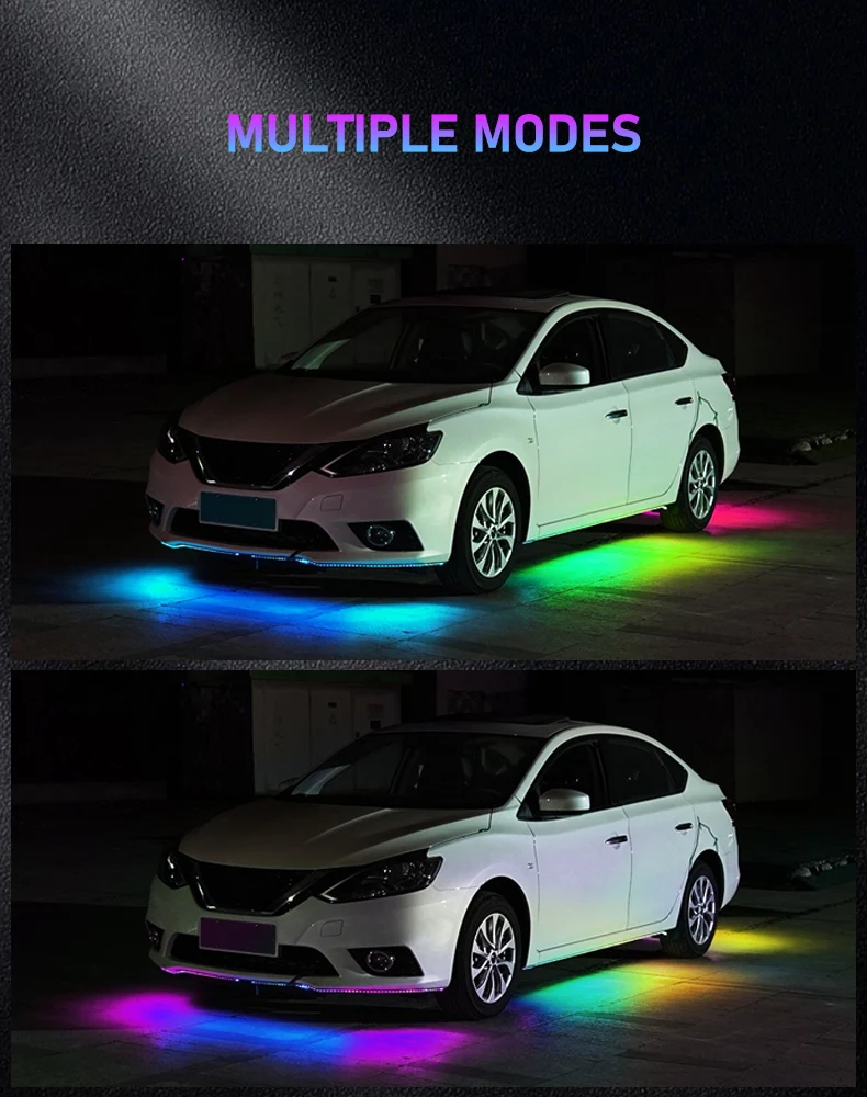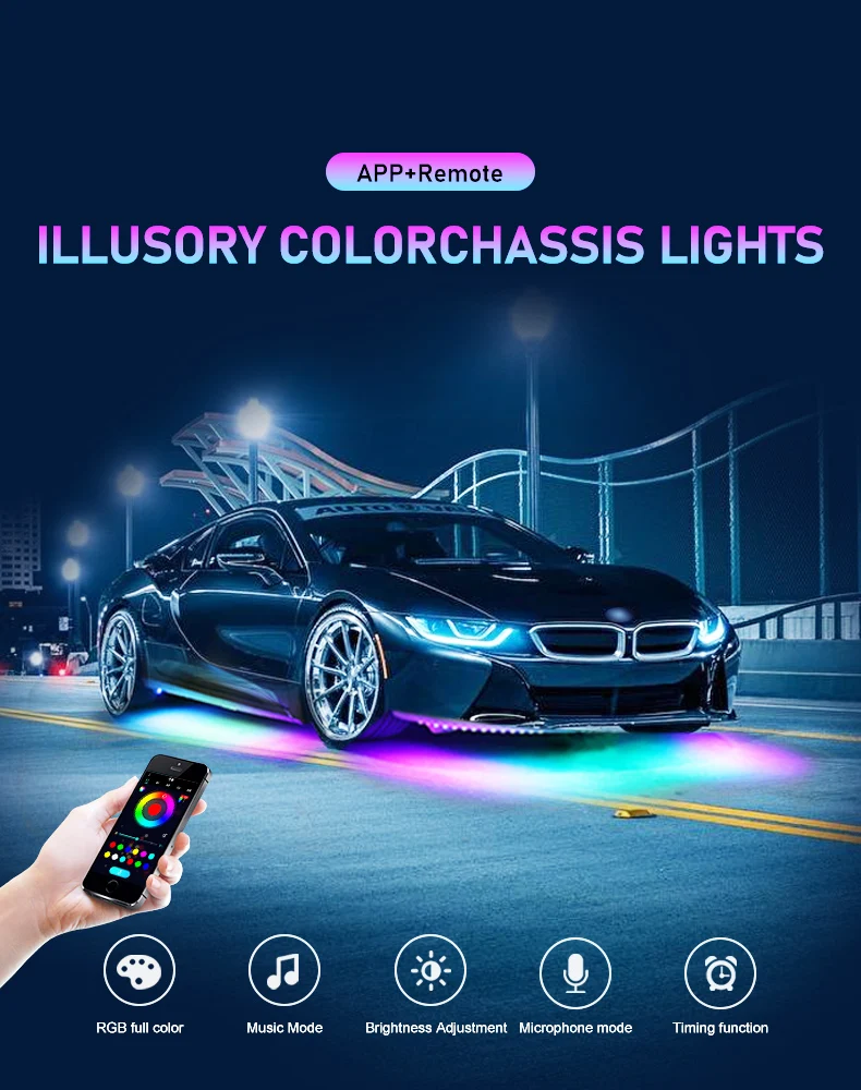 سيمفونية LED سيارة ضوء تحت توهج قطاع الخلفية 12 فولت RGB APP التحكم الصوتي عن بعد السيارات ديكور الغلاف الجوي تحت الجسم مصباح النيون