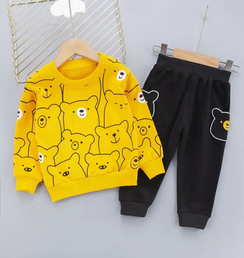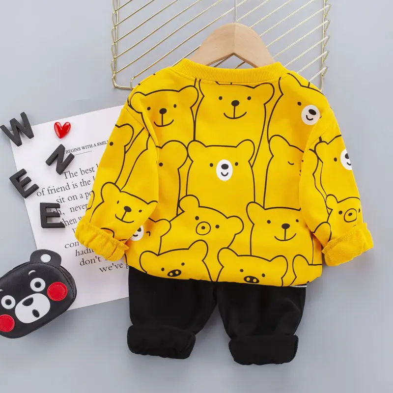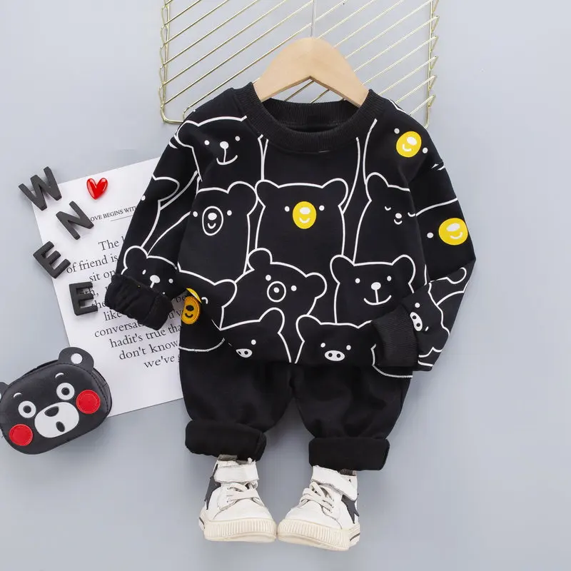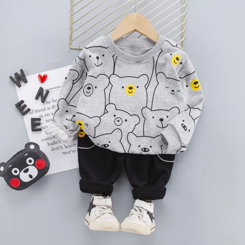 طفل الأطفال الملابس الدعاوى الربيع طفل الفتيات الفتيان ملابس رياضية الكرتون الدببة الاطفال تي شيرت الجينز 2 قطعة/مجموعة الرضع زي