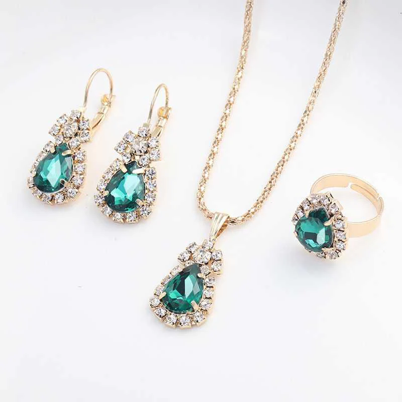 طقم مجوهرات أقراط هوب قطرة الماء أقراط الأحمر طقم مجوهرات حجر الراين المرأة قلادة قلادة/أقراط/خواتم