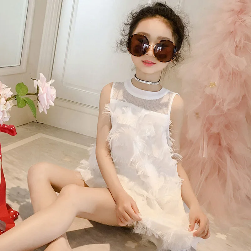 فستان صيفي للبنات 2021 على طراز الأميرات ريشة على شكل فيونكة من الشيفون الشبكي للمراهقين لمدة 5 7 9 11 13 سنة ملابس أطفال كبيرة
