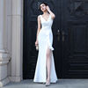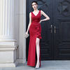 فستان YIDINGZS حريمي مثير للحفلات ماكسي أزرق ملكي ناعم من الساتان فتحة على شكل حرف V فستان سهرة 18173