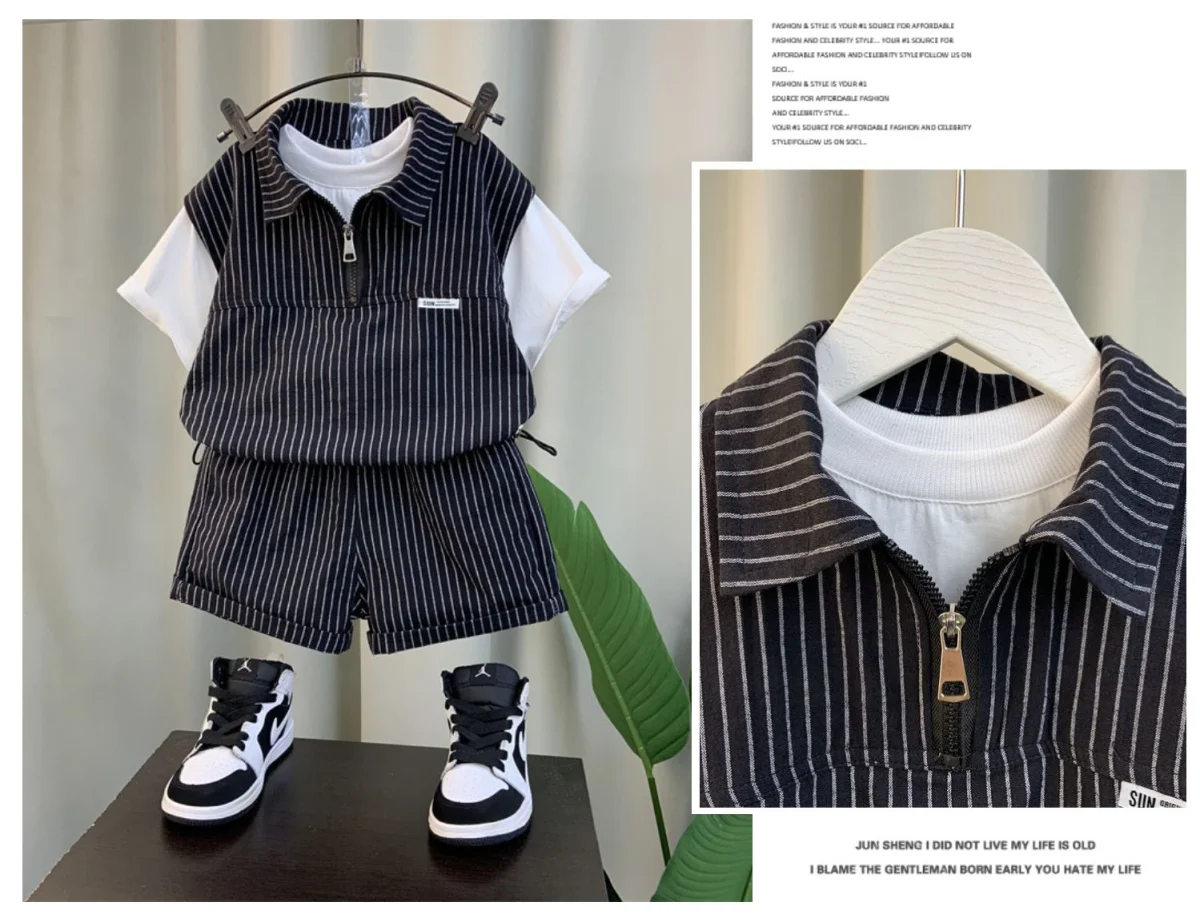 في سن المراهقة الصبي الصيف شريط وتتسابق طفل طفل الأطفال جديد بولو مجموعة الصبي رقيقة قصيرة الأكمام خليط قميص السراويل 2 قطعة رداء غير رسمية