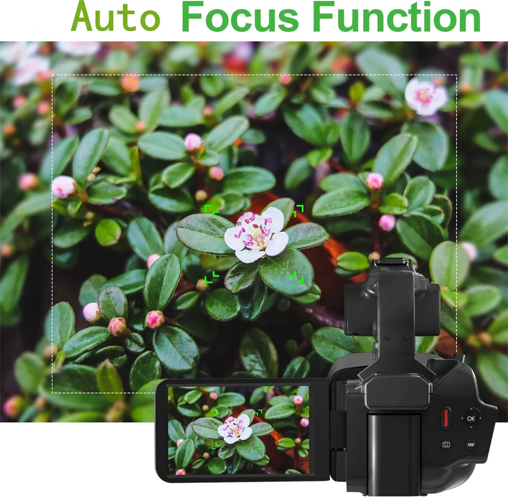 كاميرا فيديو احترافية من KOMERY بدقة 4k بدقة 64 ميجابكسل وواي فاي كاميرا تصوير رقمية كاميرا فيديو بتركيز تلقائي 4.0 بوصة تعمل باللمس