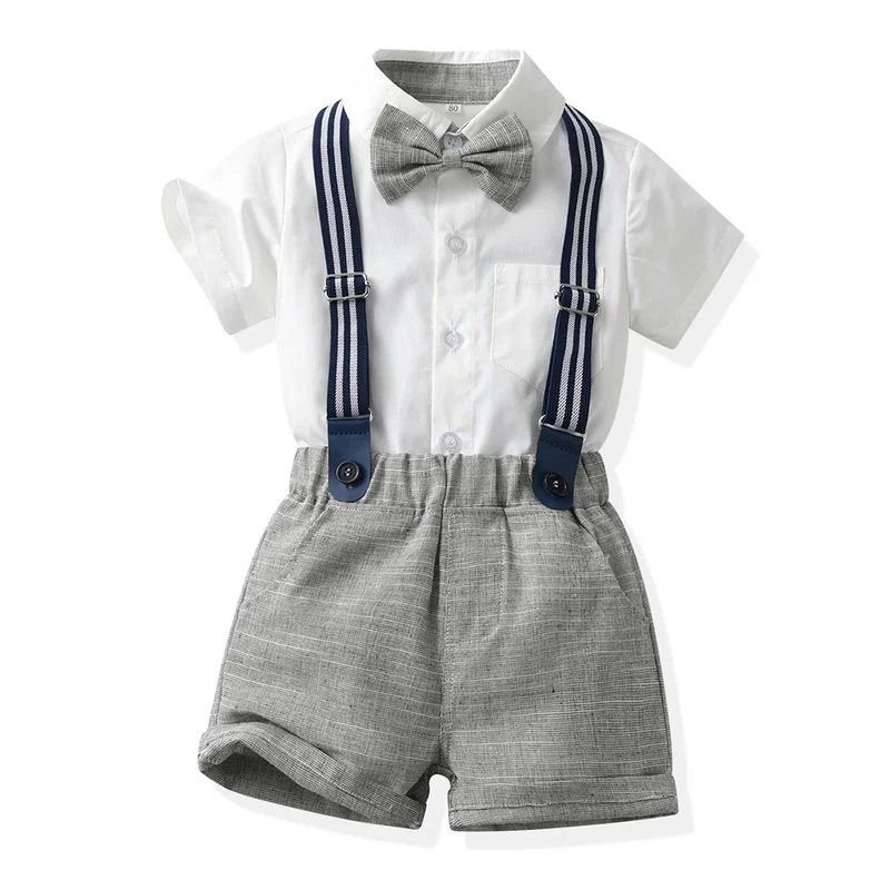 مجموعة ملابس جديدة للأطفال الذكور الذكور والأولاد بدلات قصيرة الأكمام بووتي قمصان + الحمالات ملابس قصيرة