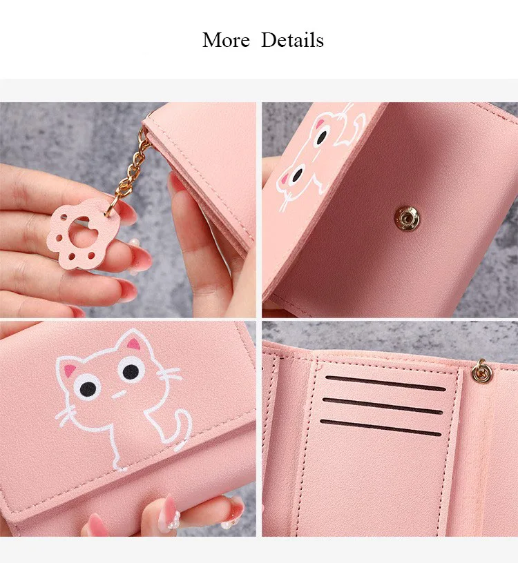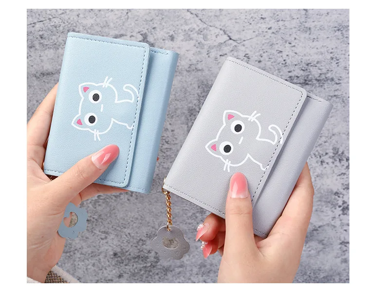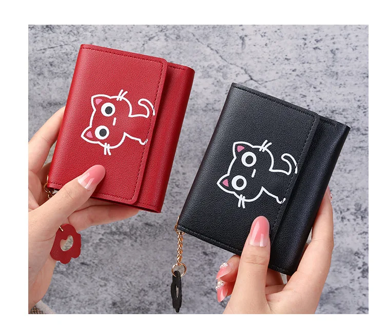 محفظة نسائية جديدة لعام 2023 ، محفظة قصيرة لطيفة على شكل قطة ، محفظة نقود صغيرة من الجلد ، محفظة نقود للبنات ، حامل بطاقات للسيدات ، محفظة بمشبك للسيدات