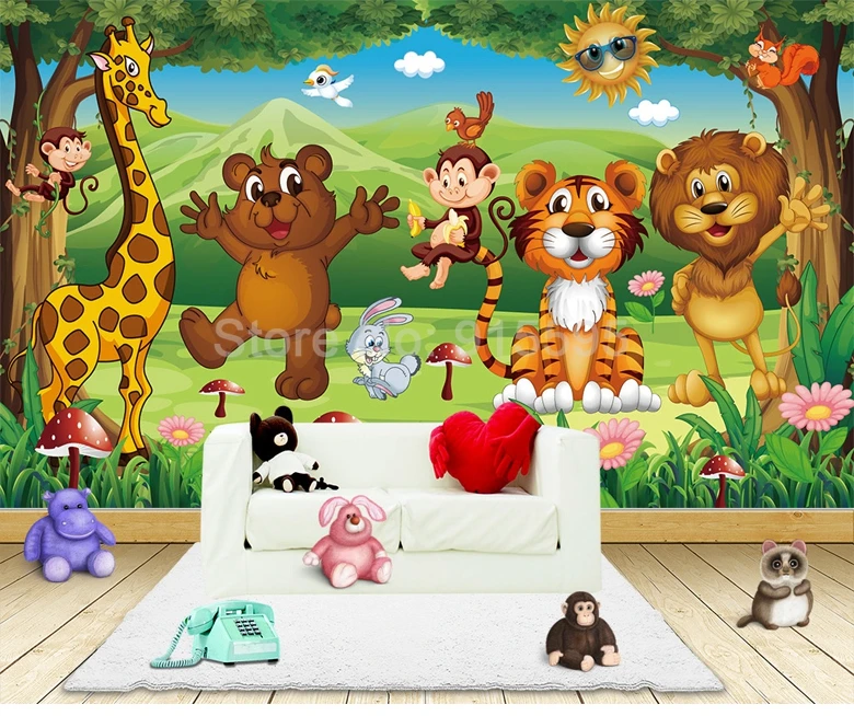 مخصص ثلاثية الأبعاد صور جدارية خلفية للأطفال غرفة الحيوان الجنة الكرتون الأطفال منزل جدارية غير المنسوجة ورق حائط لحجرة النوم اللوحة