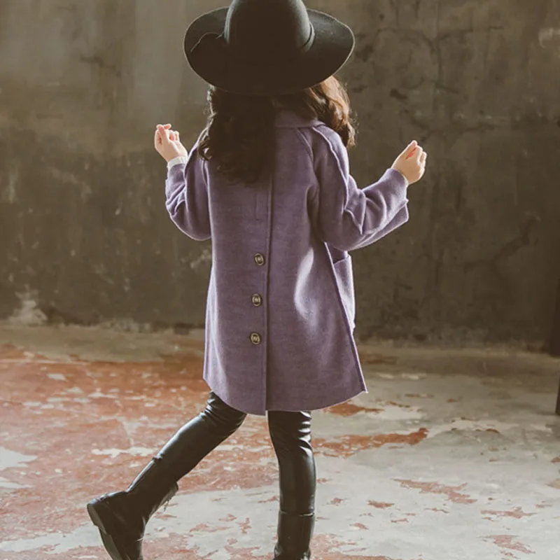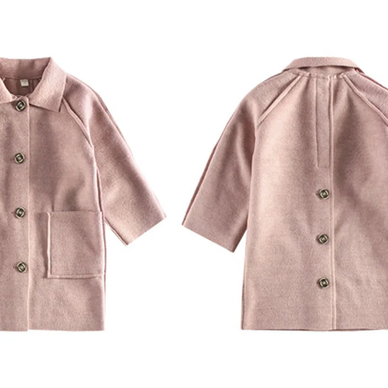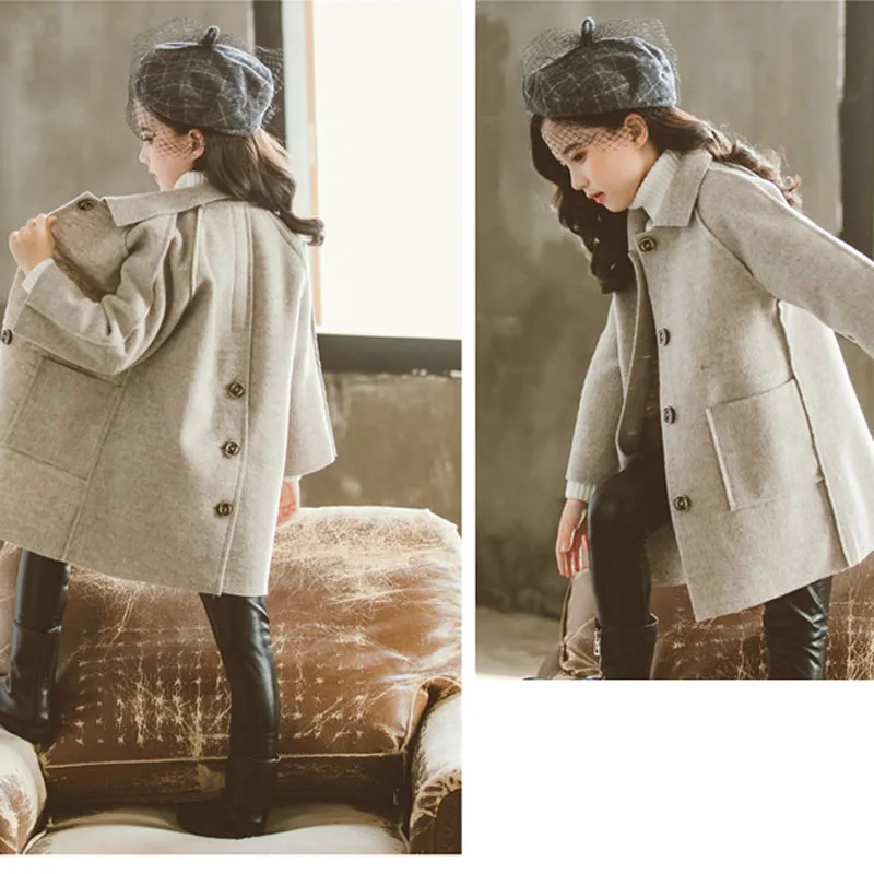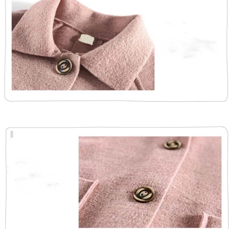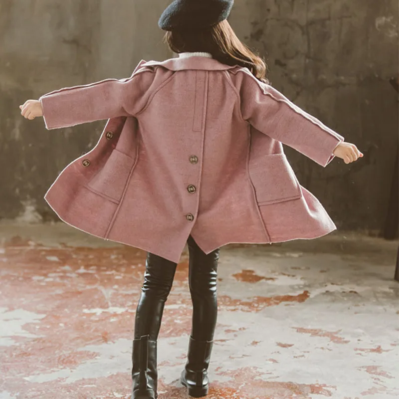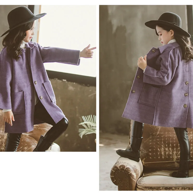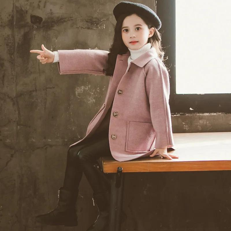 معطف صوفي بناتي ملابس أطفال قماش صوفي سميك مزدوج الوجهين 2021 معطف شتوي طويل حديث للأطفال على الطراز الكوري