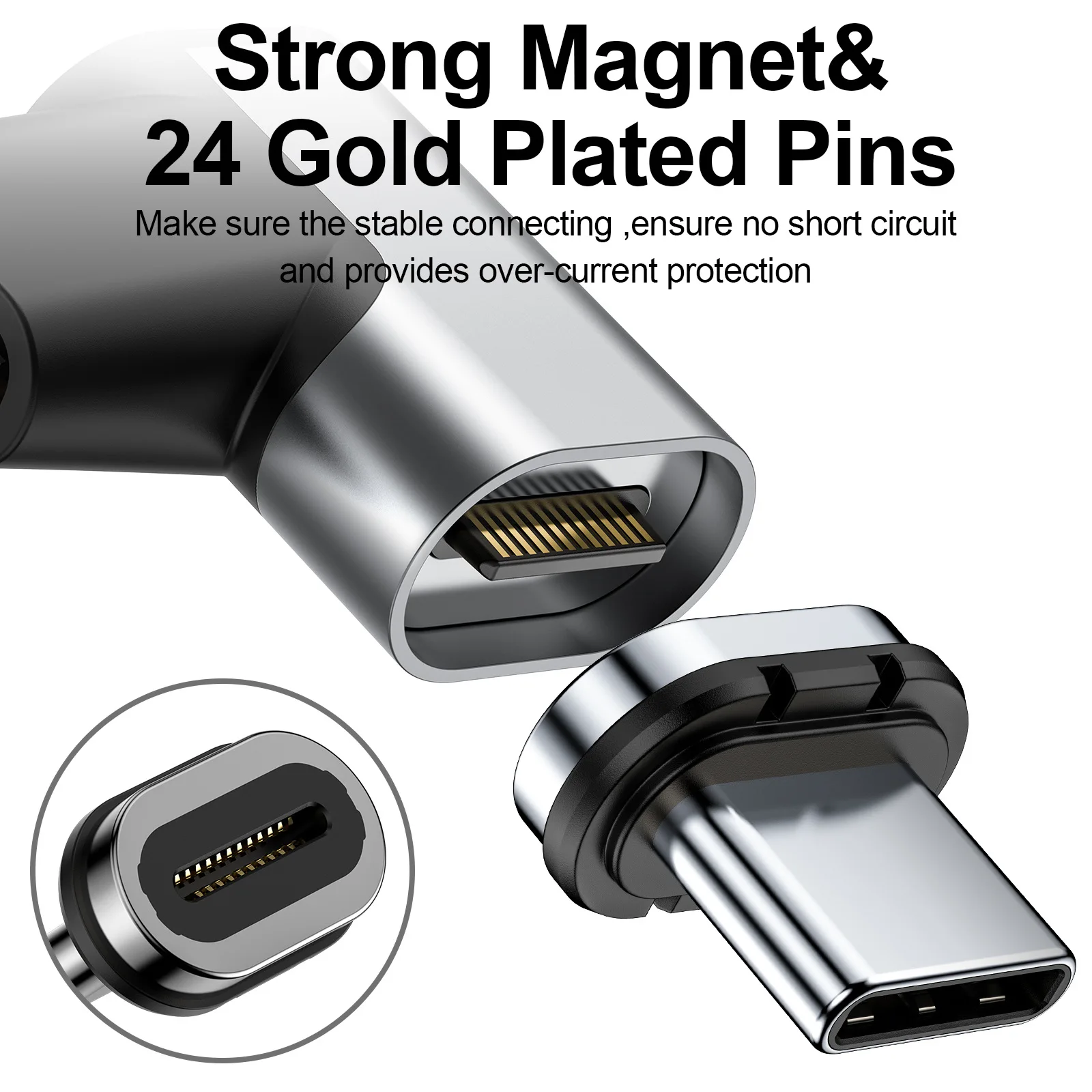 -محول USB C المغناطيسي استخدام تصميم العلامة التجارية الجديدة ، المغناطيس الشق ، 24 دبابيس كاملة مطلية بالذهب ، السكن الألومنيوم ومؤشر LED ، يجعل الشحن ونقل البيانات أسرع وأكثر أمانا ، وأكثر ملاءمة لتوصيل وإدراج