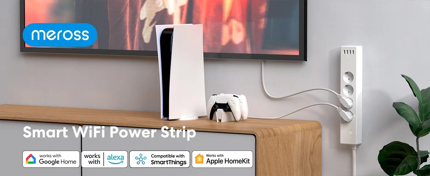 The 4-Outlet and 4-USB port smart Wi-Fi surge protector. Ideal for home and office use.,Turn each outlet and four USB ports on/off from anywhere.,Works with Apple HomeKit, Amazon Alexa, Google Assistant, SmartThings.,Create and set on/off schedules as wel