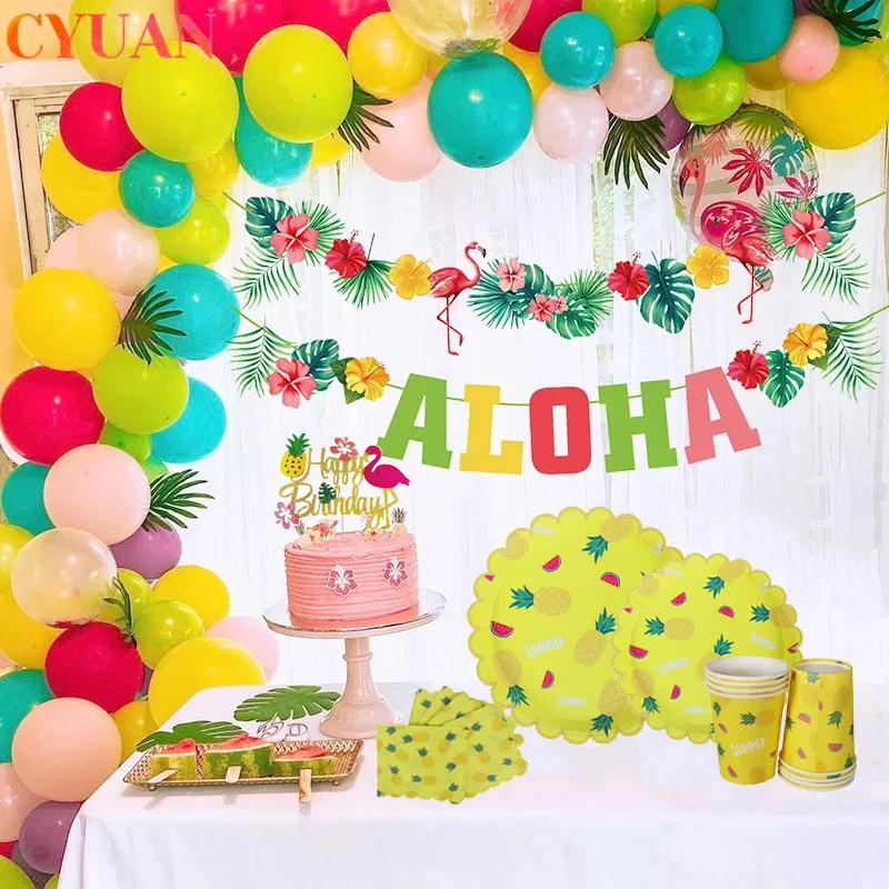 هاواي حفلة Luau فلامنغو الديكور الأناناس جوز الهند شرب كوب الزفاف عيد ميلاد الصيف هاواي الاستوائية زينة الحفلات