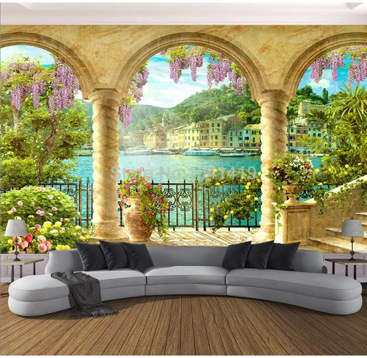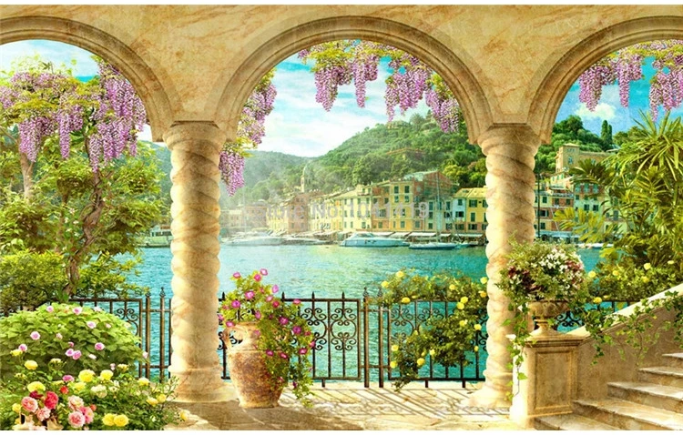 ورق حائط ثلاثي الأبعاد لصور إبداعية ثلاثية الأبعاد ، عمود ، قوس ، منظر على البحيرة ، غرفة المعيشة ، الدراسة ، ديكور المنزل ، لوحة الحائط ، Frescoes